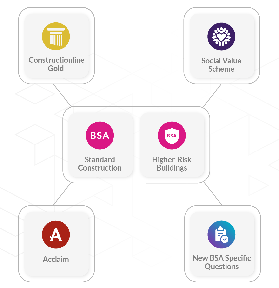 The new Building Safety Assessments allow you to provide information on key areas relating to the BSA and combine these with specific elements of industry-recognised standards, such as the Common Assessment Standard, Safety Schemes in Procurement (SSIP), and elements of our Constructionline Gold and Social Value question sets.