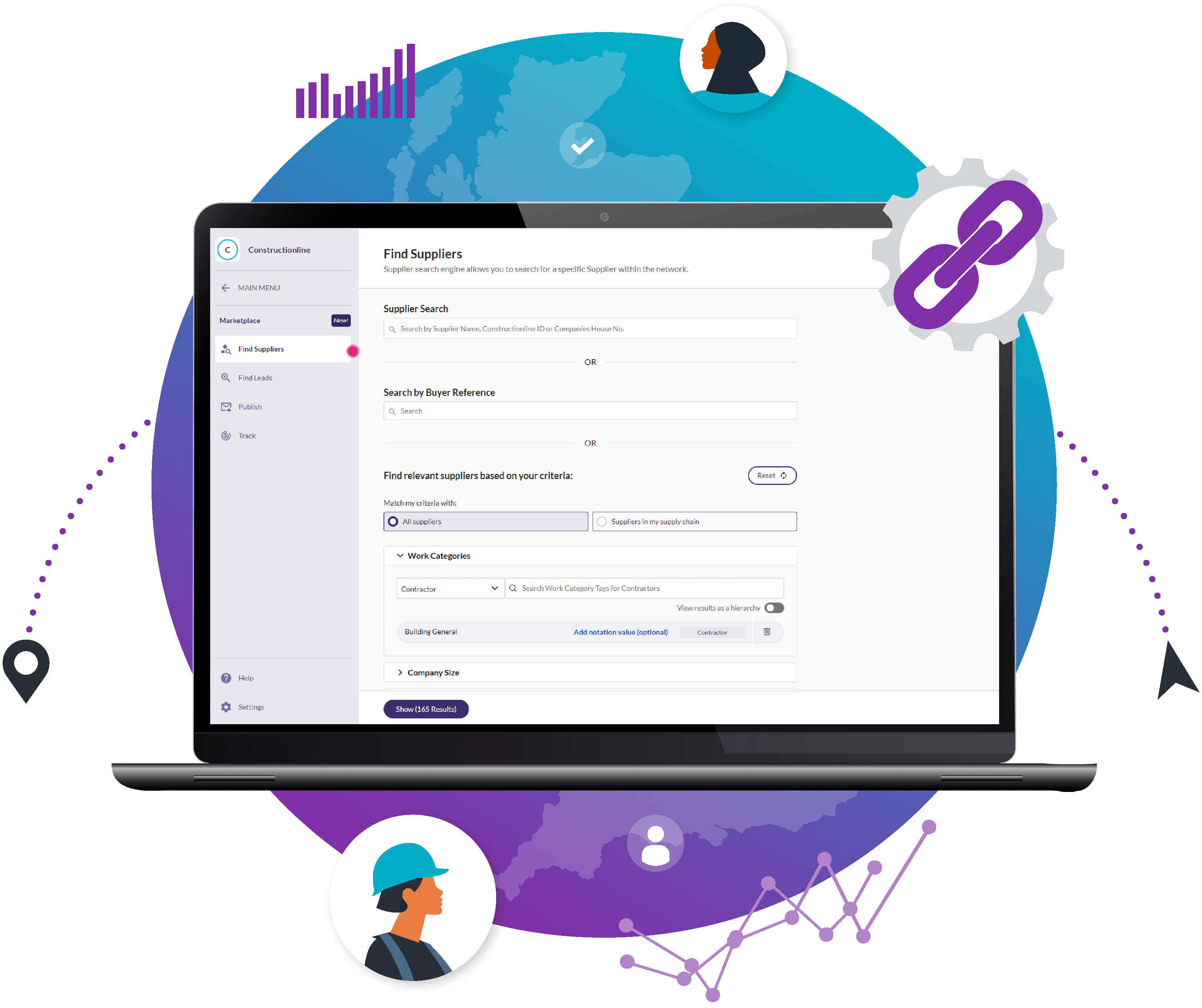 The Find Supplier function is intuitively designed to help you find subcontractors and assess their reputation, skills and credentials to create a short list of potential partners.