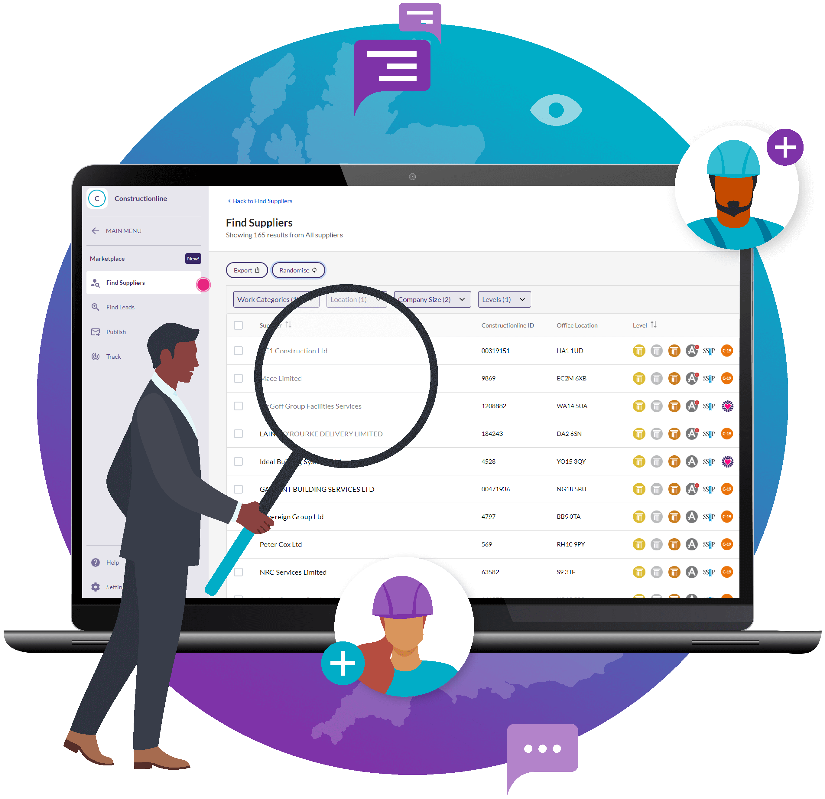 You can access our network of over 70,000 subcontractors across 4,800+ work categories working throughout the UK through our platform.
