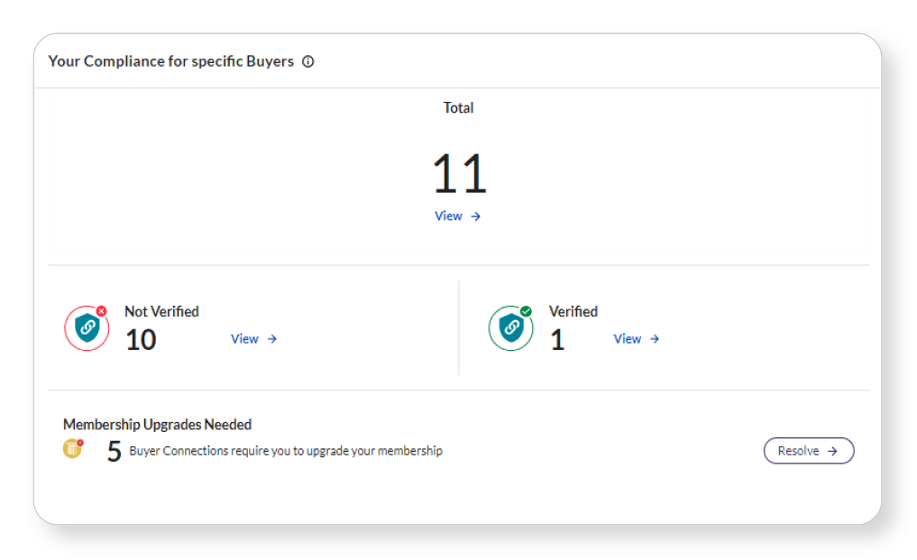 This feature shows you if you require any upgrades or other issues that need to be resolved to work with particular buyers you work with, showing you:
