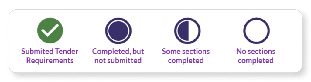 For the ‘Tender Requirements’ documents that you have asked suppliers to complete, there are four icons to show the status.