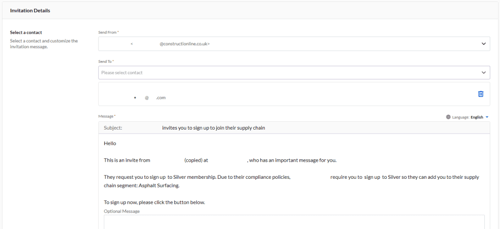 On the ‘Invite Supplier’ app, you can request suppliers join the platform. For existing suppliers, you can invite them to upgrade their membership to your desired level.